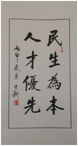 国华人才测评工程研究院工作文化“弘扬工匠精神、培养技能人才、发展民生工程、促进产业升级”,中共中央党校(国家行政学院)办公厅主任边保华书,国华人才测评研究院收藏。